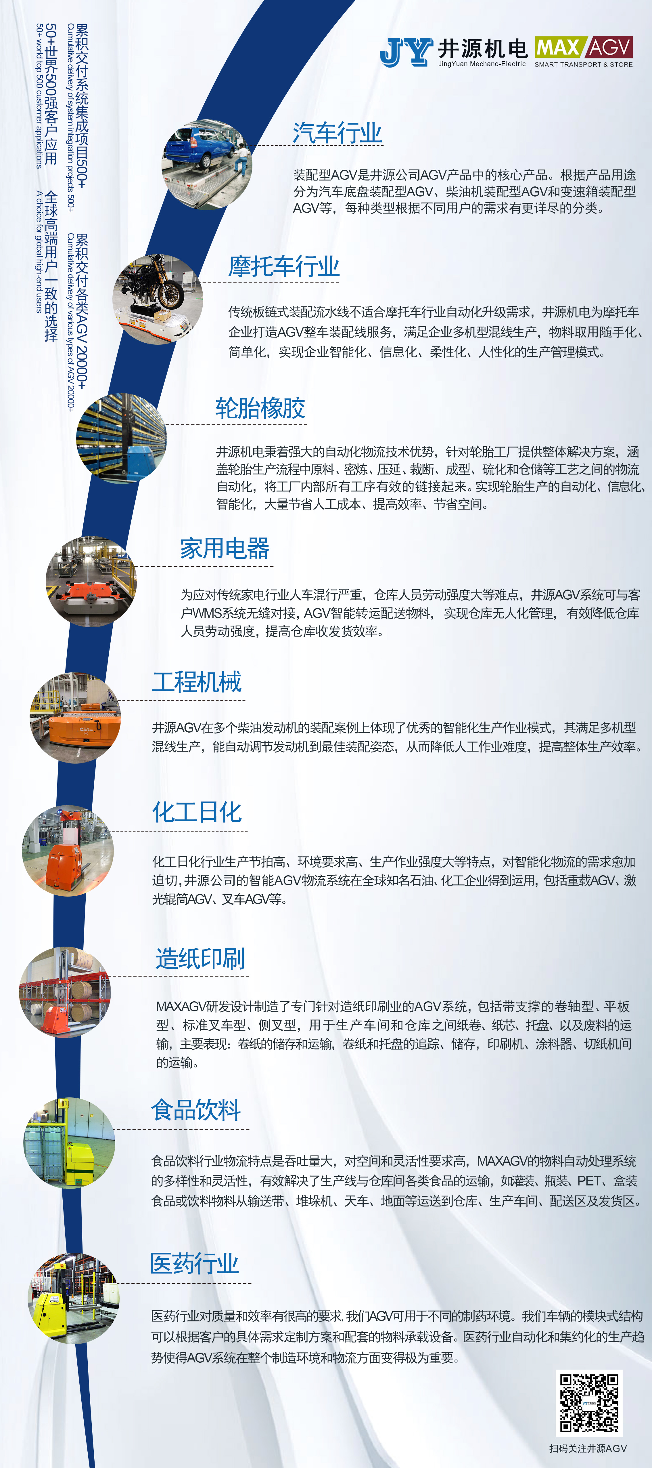 為應(yīng)對(duì)不同行業(yè)物料的轉(zhuǎn)運(yùn)需求,井源近19年來(lái),通過(guò)不斷地優(yōu)化、調(diào)整機(jī)械設(shè)計(jì),提升功能性運(yùn)用,來(lái)適配用戶智能化升級(jí)改造規(guī)劃。豐富的產(chǎn)品種類,已廣泛服務(wù)于汽車、摩托車、輪胎、工程機(jī)械、家用電器、食品飲料、化工日化、造紙印刷等眾多行業(yè),滿足其不同物料、不同載具的轉(zhuǎn)運(yùn)工作。