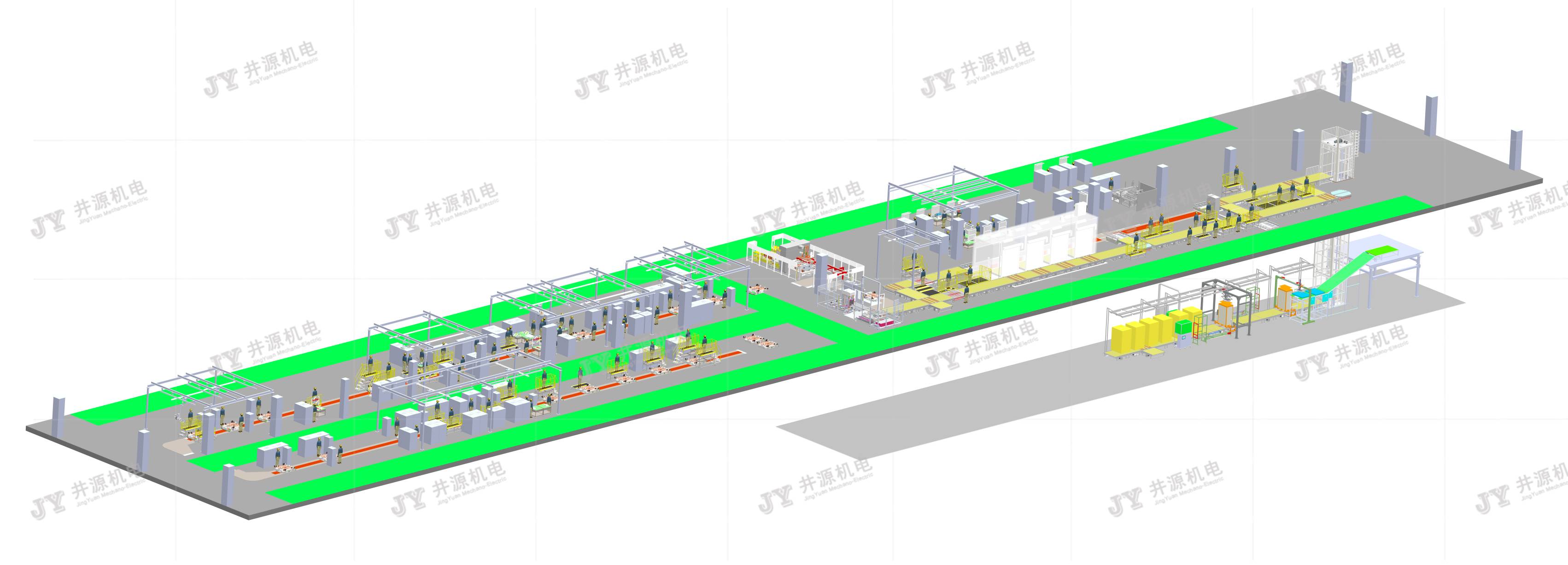 本次項目,商用干衣機(jī)智能總裝產(chǎn)線主要運用于多型號干衣機(jī)智能化裝配生產(chǎn)工作,計劃以智能AGV為動力驅(qū)動,完成不同型號干衣機(jī)的柔性化、信息化、智能化生產(chǎn),實現(xiàn)總裝、檢測、清洗、包運等生產(chǎn)工藝的自動化運輸工作。裝配線包含有:總裝裝配、檢測、清洗、包運、智能平衡吊、簡易便捷模塊預(yù)裝線、檢測設(shè)備、助力設(shè)備、工裝器具、AGV裝配設(shè)備等。