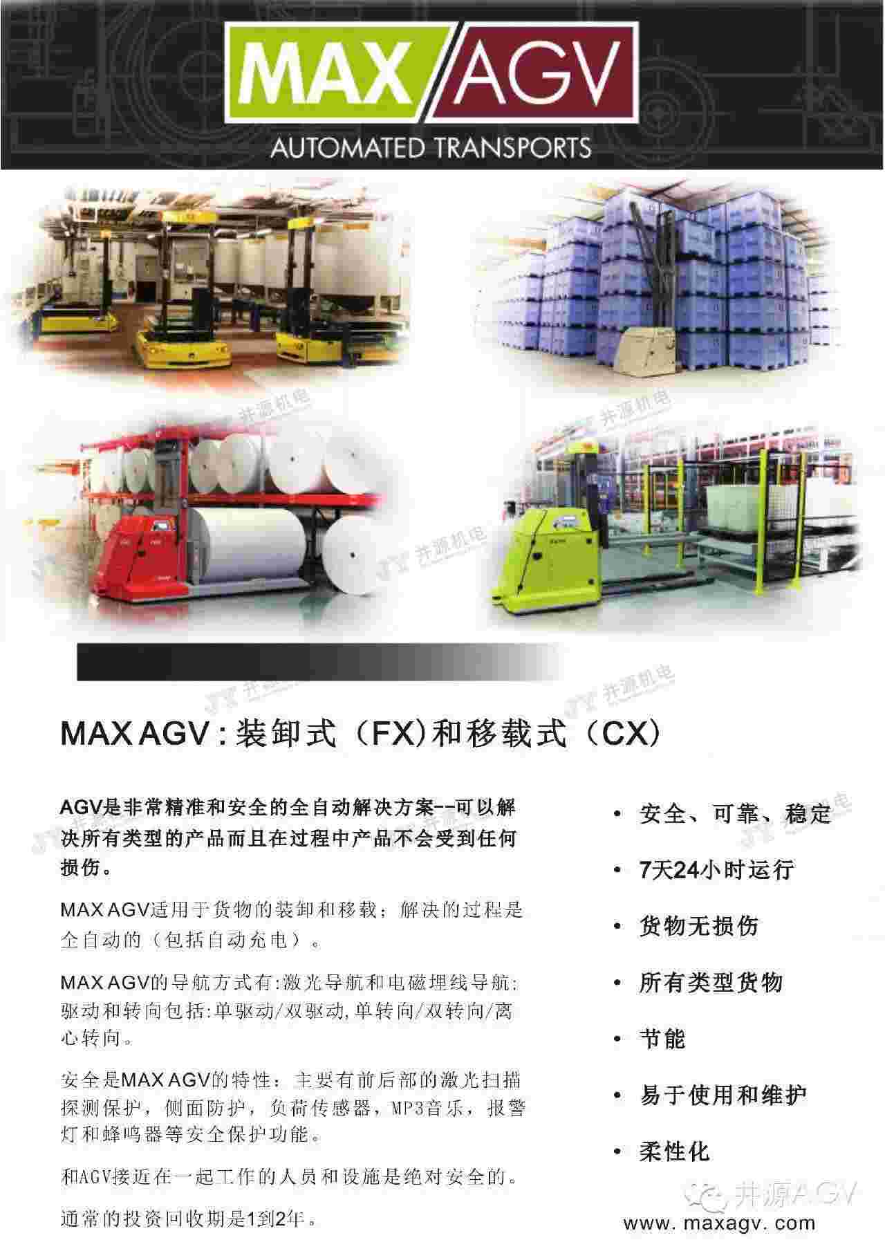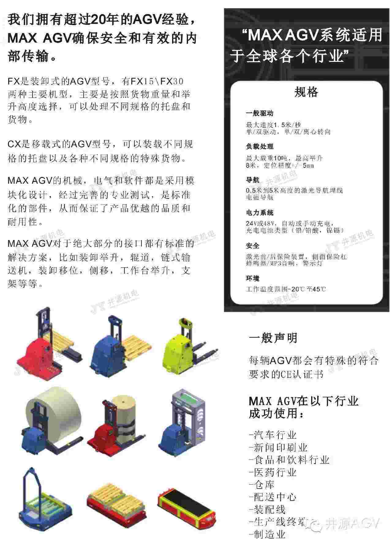 在國內(nèi)最早推出磁帶導(dǎo)航通用物流AGV,擁有“JYME”和“MAX AGV”兩大移動機(jī)器人品牌,形成了包括激光導(dǎo)航、電磁導(dǎo)航、視覺導(dǎo)航、磁帶導(dǎo)航四大系列,300KG-50T的多個(gè)規(guī)格,叉車型、裝配型、承載型、牽引型等種類完善的產(chǎn)品體系。