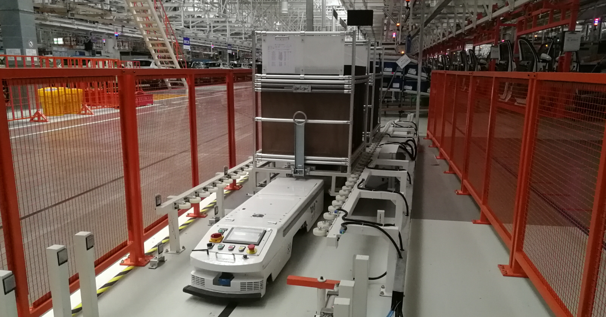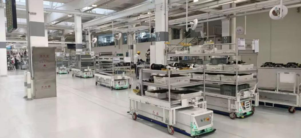 紅旗新總裝井源AGV運(yùn)行現(xiàn)場(chǎng)