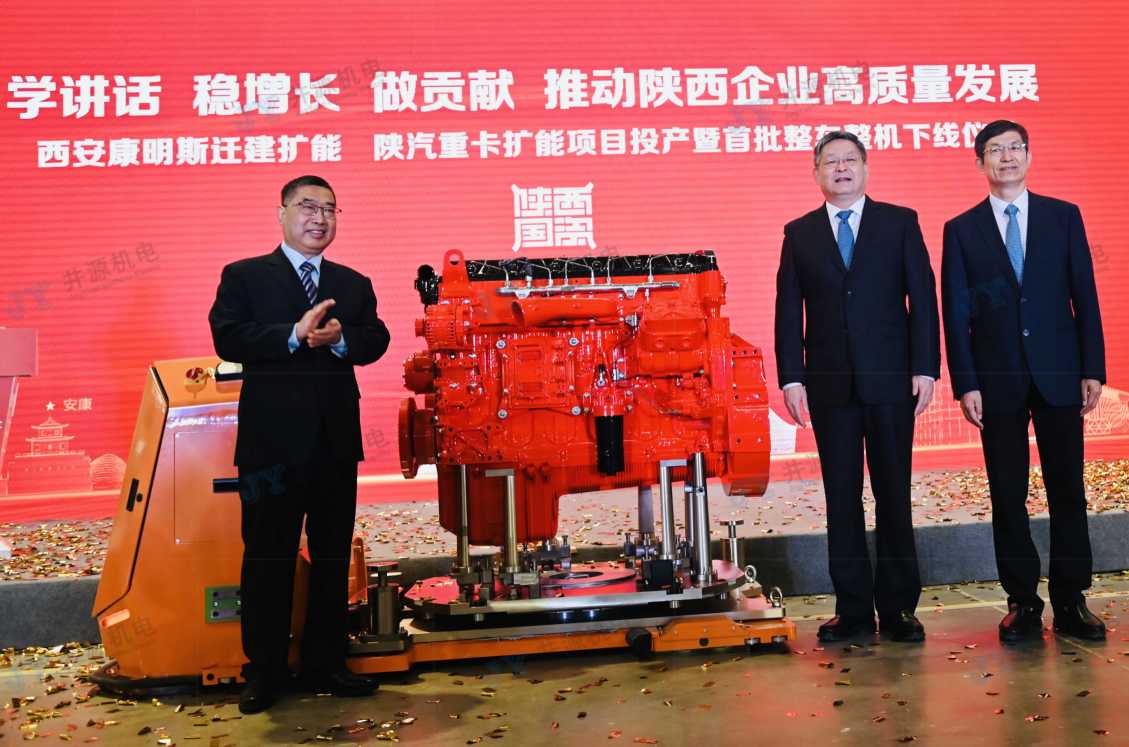 4月22日,西安康明斯遷建擴(kuò)能、陜汽重卡擴(kuò)能項(xiàng)目投產(chǎn)暨首批整車整機(jī)下線儀式于西安順利召開,活動現(xiàn)場,陜西省國資委黨委書記劉斌、陜汽控股黨委書記、董事長袁宏明、西安市國資委黨委書記、主任劉三民等領(lǐng)導(dǎo)出席現(xiàn)場,并宣布項(xiàng)目正式投產(chǎn),作為西康柔性化生產(chǎn)裝配線解決方案的合作伙伴,井源機(jī)電十分榮幸于現(xiàn)場共同見證此情此景。